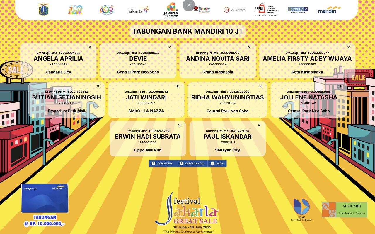 1 | ARDITA SETYORINI | 240004866 | FJGS1875091 | Gandaria City |